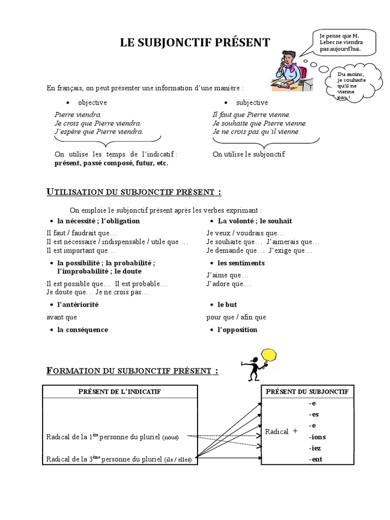 Le Subjonctif Present Francais Fle Fiches Pedagogiques