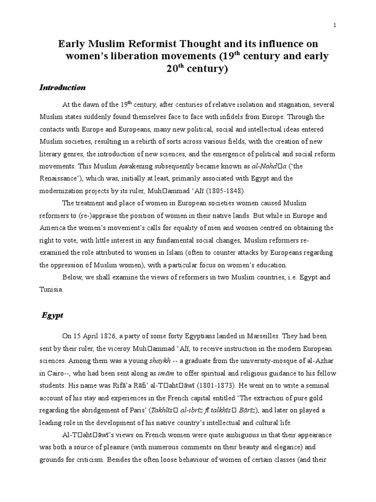 Early Muslim Reformist Thought And Its Influence On Women S Liberation Movements 19 Century And Early Century Women In Islam Hijab