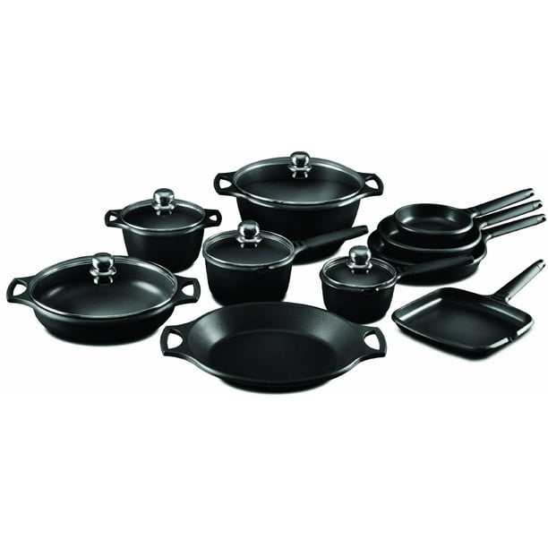Decorate your countertop with the Magnalite Cookware Set This durable and attractive, cast aluminum 13piece cookware set was made to endure the rigors of everyday use The pieces in this kitchen cookware set come with heavycast lids that capture the moisture inside, enabling faster cooking. Cast Iron Griddles ;. Includes 1 and 2 qt saucepans with lids, 5 qt dutch oven with lid, 8 and 95 in fry pans, and a nylon spatula and spoon Made of thick gauge aluminum that provides even/quick heat conduction and prevents hot spots Nonstick for easy food release/cleaning and healthy cooking;.