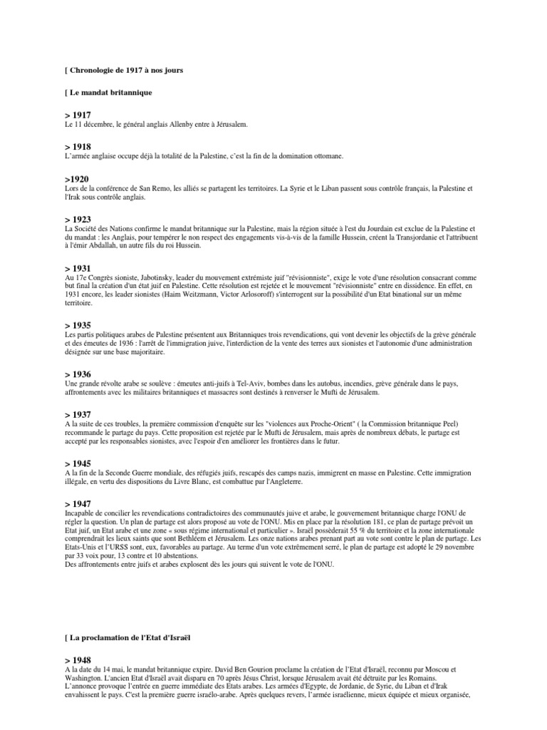 Chronologie De 1917 A Nos Jours Accords D Oslo Organisation De Liberation De La Palestine