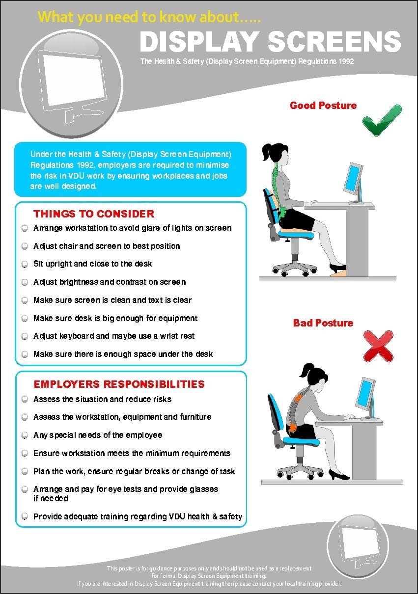 Display Screen Equipment Guidance Health And Safety Posters Laminated Gloss Paper 850mm X 594mm A1 Health And Safety Office And Commercial Wall Charts Education Charts By Daydream Education