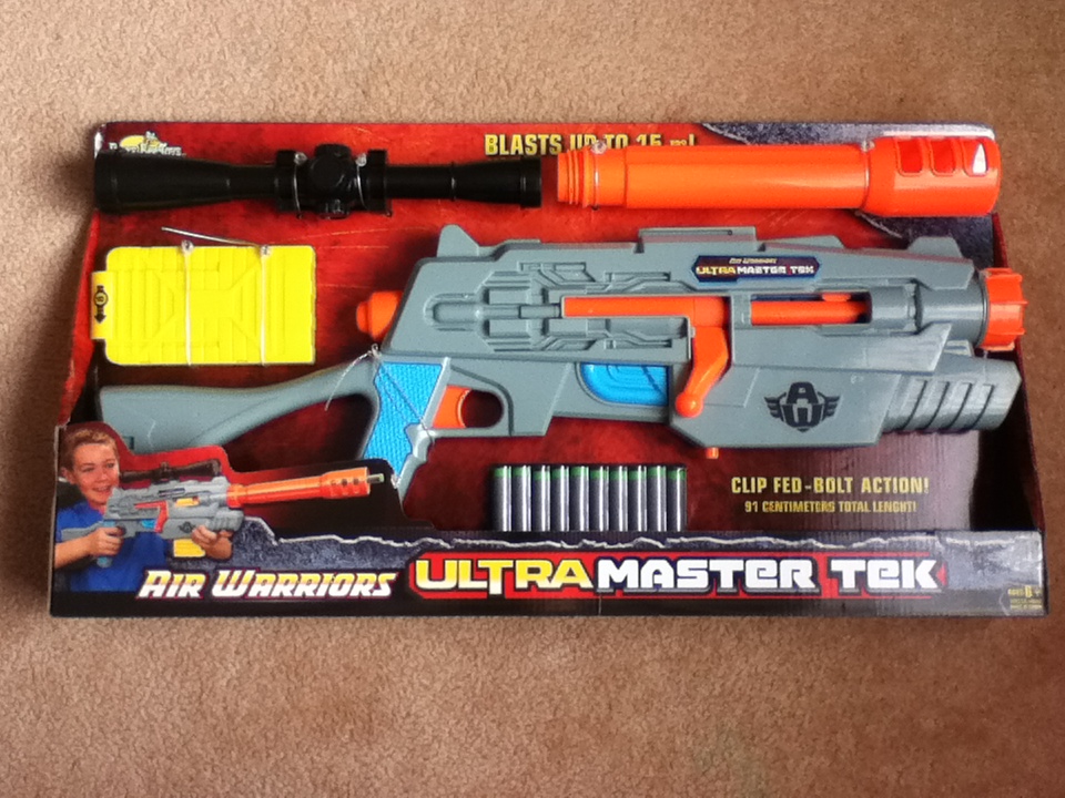 This means that you can grab the orange Nerf magazines, put any Nerf Elite dart (blue, green, white, orange, or decorated Rebelle darts) in it and click it right into the Buzzbee Air Warriors Ultratek Tek Master, and it will shoot that dart 80something FPS with it's powerful "springer"/plunger system. Air Warriors Ultra Tek Snipe Dart Blaster Age range 6 years and up;. You are in the right place to get cheap prices products here.