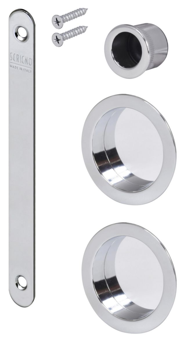 Garniture Pour Porte Coulissante Simple Vantail Chiudiscrigno Sans Serrure Chrome Brillant Scrigno