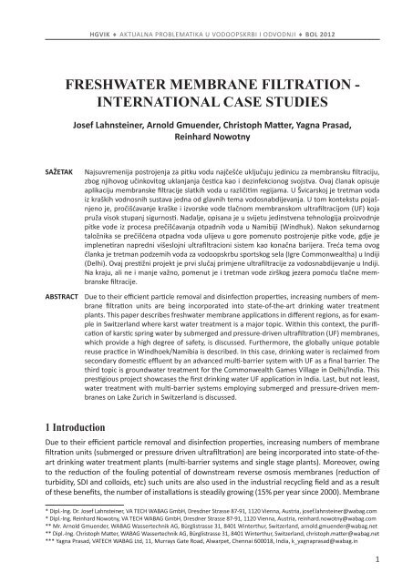 Membrane Filtration Lehrstuhl Fur Siedlungswasserwirtschaft