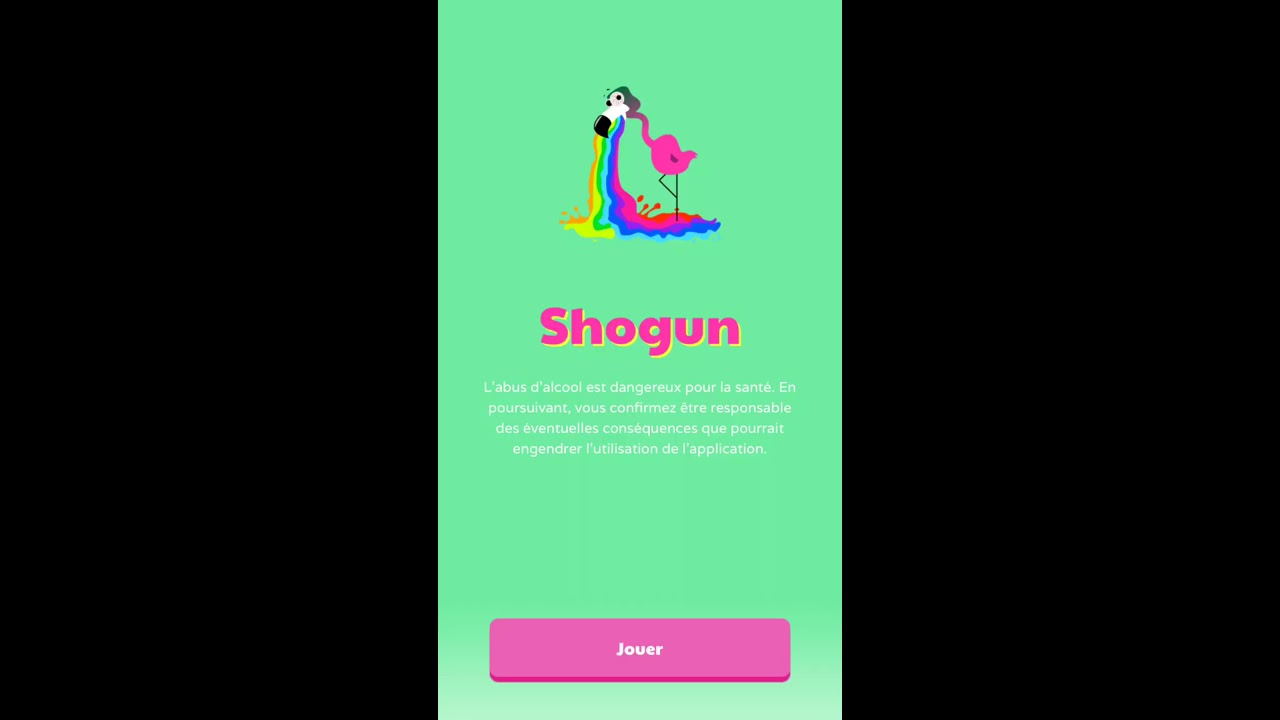 ***Principe de l'application Shogun *** le jeu d'alcool pour les soirées (lancer une partie prend 30 secondes) 1 Entrez le nom des joueurs voulant s'amuser 2 Choisissez 1 des 6 thèmes Pas l'temps d'niaiser, hot, hard, entre mecs, entre nanas ou vraiment dégueu.
